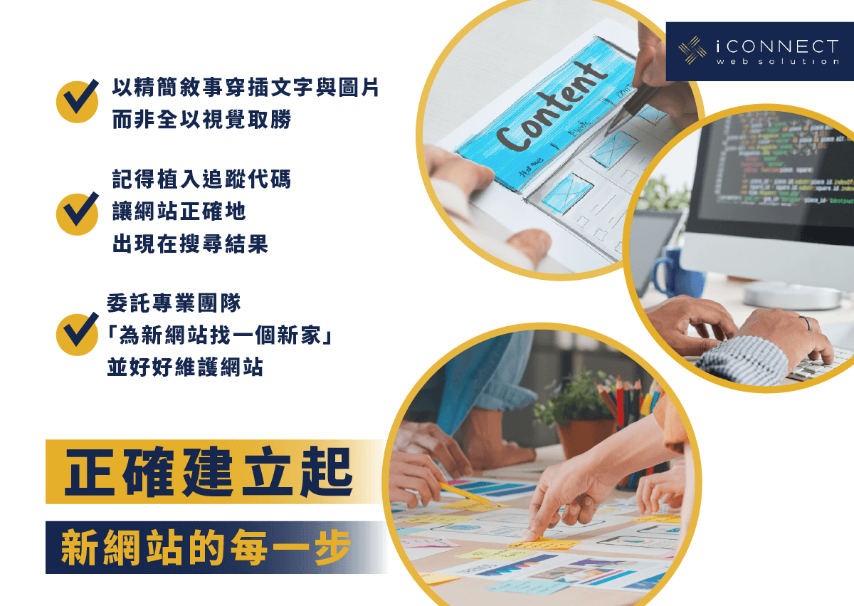 - 委託專業團隊「為新網站找一個新家」,並好好維護網站